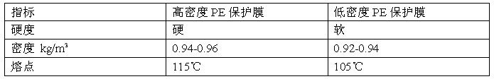聚乙烯有許多種類(lèi),熔點(diǎn)、密度各有不同,高密度PE保護(hù)膜和低高密度PE保護(hù)膜比較可以通過(guò)表格來(lái)看到:
