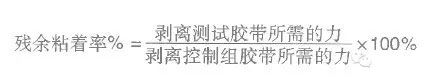 殘余接著強度指壓敏膠面材在指定條件下與硅酮離型底材先接觸,之后將其貼在標(biāo)準(zhǔn)測試板上制成標(biāo)準(zhǔn)測試片,之后在固定的剝離角度、速度下,從標(biāo)準(zhǔn)試片上將其剝離時所需要的力。而殘余接著率是以百分比表示的,是將上述壓敏膠面材殘余粘著強度比上同一面材在不接觸硅酮離型底材前提下與標(biāo)準(zhǔn)測試版貼合所產(chǎn)生的粘著強度的比值。